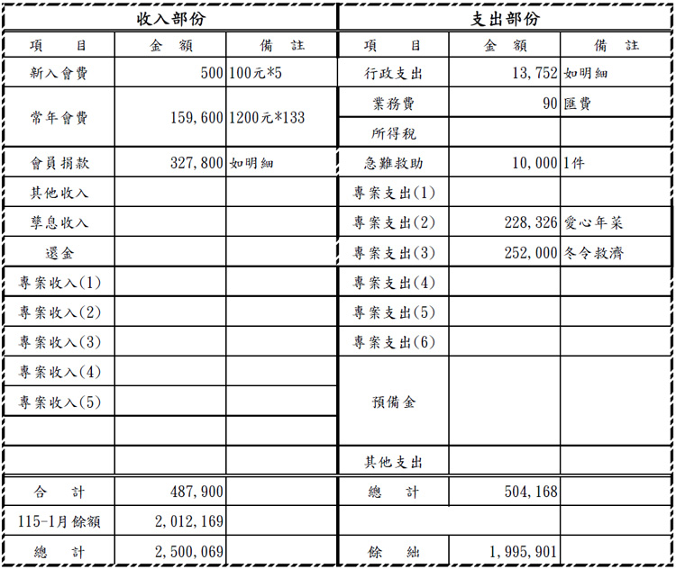 【中華民國 115 年 01 月 01 日 至 115 年 01 月 31 日止】